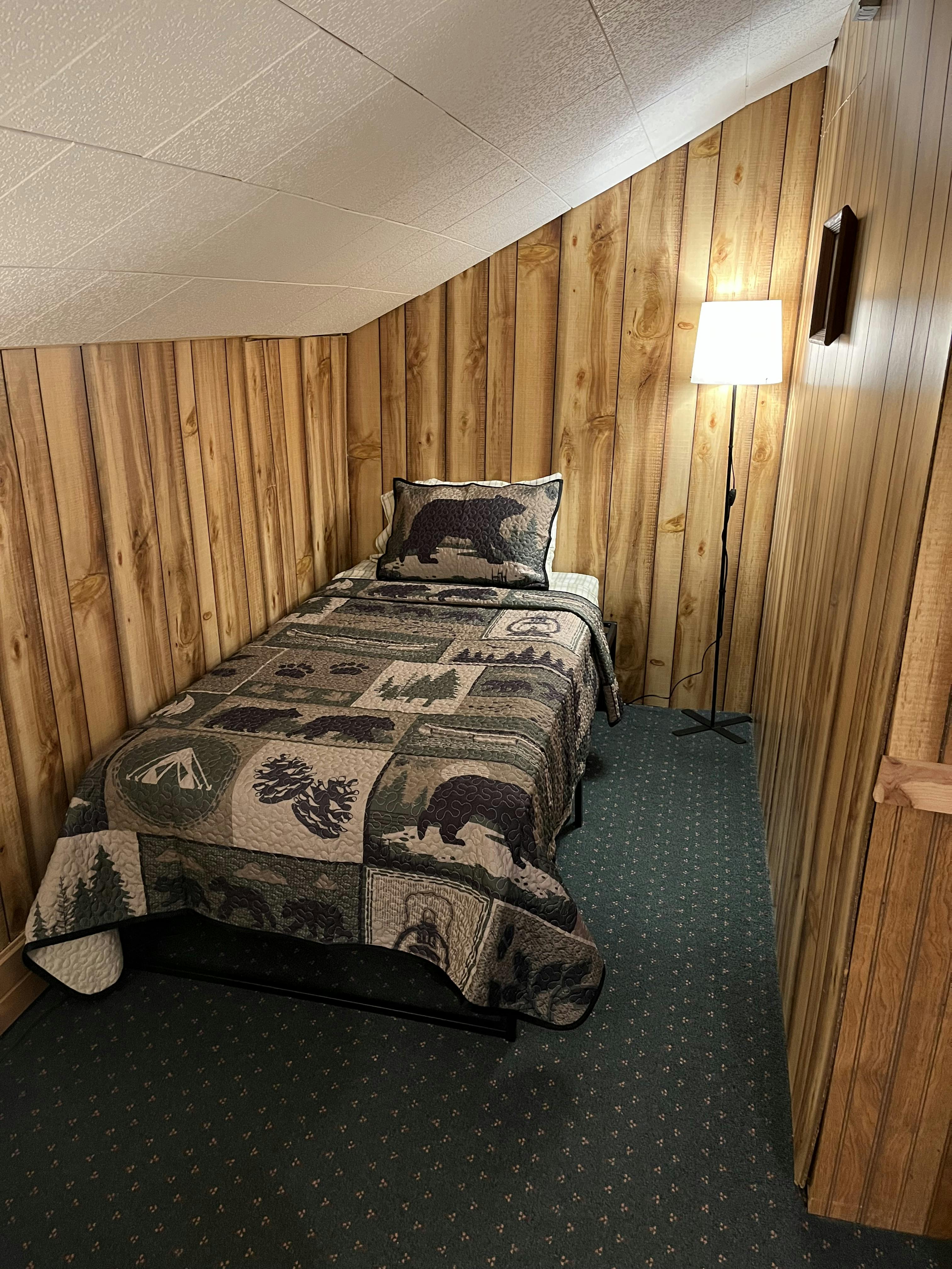 Cabin 0 "The Aught" Cabin 0 is only 10 feet from the lake and has a single bedroom with one queen bed. The combined kitchen/living room has windows overlooking the lake and a stone wood burning fireplace. A single bathroom comes with a combination tub/shower. It has a deck as well as a small screened porch with a private view. WiFi, TV (no reception), DVD player with a collection of DVD's, fire pit, barbecue grill and private pier. Max occupancy also includes a futon in the living room, (kids' use only for sleeping please.) Occupancy 2, Maximum 3240/day 3 night minimum, spring and fallSummer minimums: $1325/six days, $1565/seven daysSpring/Fall: $1095/six days, $1335/seven days$80 cleaning feeCabin 1 "Eileen (I Lean)" A favorite cabin is back with romantic touches. 15 feet from the lake and all newly remodeled. Living room has stone wood burning fireplace, Grandma’s antiques, and new kitchen cabinets complete with ample kitchen accessories. Cabin has a TV (no reception) and DVD player, and now also has WIFI. Newly renovated bathroom with oversized walk in shower. Bedroom has a new queen bed, and love seat in the living room in front of the fireplace. Relax with a book or glass of wine in the large screened in porch looking out to the lake. Barbecue grill and fire pit overlooking the water. Private pier.Occupancy 2 Maximum 2 Adults only $235/day 3 Night minimum, spring and fallSummer minimum $1285/six days, $1520/seven days,Spring/Fall $1070six days, $1305/seven daysCleaning fee: $80Cabin 3 "Big Bear" Cabin 3 is our largest cabin and 30 feet from the lake, located at the main lodge pier. A favorite with fishermen and families, it has a new kitchen and all new carpeting. A large screened in porch with lounge and eating area overlooks the main view of the lake. "Big Bear" has combined kitchen/living room with hide-a-bed sofa and fieldstone wood burning fireplace. Three bedrooms, one with a queen bed and twin, and two bedrooms with two twins. Two bathrooms with tub/showers. TV, (no reception) DVD player, fire pit and barbecue grill. Additional private pier. Occupancy 7 Extra person $35, maximum 9$320/day Minimum 3 nights Spring and FallSummer rate $1805/six days, $2125/seven daysSpring/Fall rate $1525/six days, $1845/seven daysCleaning fee $80Cabin 4 Cabin 4 has a new large porch with futon and dining table. It overlooks the lodge dock and main channel of the lake. Two bedrooms, one with a queen bed, and one with a double and a twin. Two bathrooms, one newly remodeled with an oversized walk-in shower with rainfall showerhead, and one with a tub/shower combination. New kitchen cabinetry and a large stone wood burning fireplace in the living room with futon sofa, TV (no reception) and DVD player. Large dining room table overlooking the lake for family dinners or a good puzzle game. Fire pit and BBQ grill. Cabin has additional private dock., and a wooded lakeside firepit. A perfect base for families or some serious fishermen.Occupancy 5, Extra person $35 Maximum 7$290/day Minimum 3 nights Spring and FallSummer rate $1625/six days, $1915/seven daysSpring/Fall $1325/six days, $1615/seven daysCleaning fee $80Cabin 5 “Sunrise” For Up North luxury, look to Cabin 5. It is 30 feet from the lake with large screen porch with floor to ceiling views of the lake. Two bedrooms, one with a queen bed, and one with two twins. Bathroom has a walk in shower. Kitchen is complete with microwave, coffee maker, and full size refrigerator. Combined kitchen/living room has a stone gas fireplace and large picture windows. TV (no reception) and DVD player. Private dock, lakeside fire pit and barbecue grill. Newly renovated with special touches.Occupancy 4, Maximun 4$285/day Minimum 3 nights Spring and FallSummer rate $1540/six days, $1825/seven daysSpring/Fall $1275/six days, $1560/seven daysCleaning fee $80Cabin 6 Cozy log cabin with an artist's touch. Lounge by the warm fireplace or cook up a tasty meal in the vintage kitchen. One bedroom with queen bed and pull out couch. Additional futon in the living room. One bath with tub/shower combination. Wooded lot overlooking the private dock and fire pit. Perfect for a quiet getaway.Occupancy 3 Maximum 4$270/day Minimum 3 nights Spring and FallSummer rate $1480/six days $1750/seven daysSpring/Fall rate $1230/sid days $1500/seven daysCleaning fee $80Cabin 7 Ten feet from the lake, remodeled, with a beautiful view. Two bedrooms, one with double bed, and one with bunks with a double on the bottom and twin on the top. One bathroom with large shower. Combined kitchen/living room with futon sofa, stone gas fireplace, picture window. Screened in porch, fire pit and barbecue grill. Nice view of the lake, and a great cabin for couples or family. Private pier. Occupancy 5, Extra person $35, maximum 7$300/day Minimum 3 nightsSummer rate $1685/six days, $1985/seven daysSpring/Fall $1480/six days, $1780/seven daysCleaning fee $80Cabin 8 An upscale cabin for up to 8 people. 30 feet from the lake with a great view. Air conditioned with three bedrooms, one with a queen, one with two twin beds, and one with two bunk beds. Large living room with floor to ceiling fieldstone fireplace, and futon. Separate, newly remodeled kitchen with sliding doors looking out to the lake. Very small screened porch. TV, (no reception), DVD player, private pier, fire pit, and Big Green Egg barbeque grill for family picnics. No pets, please.Occupancy 6, Maximum 8$325/day Minimum 3 nights Spring and FallSummer rate $1835/six days, $2160/seven daysSpring/Fall $1580/six days, $1905/seven daysCleaning fee $80Cabin 10 "The Cottage" Cabin 10, The Cottage got a recent renovation. New cedar paneling and a new upscale kitchen makes The Cottage a comfortable choice for a family or friends. It is only 150 feet from its private dock on the lake where you can tie up your boat or rent one of ours---some nice muskies have been caught from that dock. A large screened in porch overlooks its wooded fire pit area with picnic